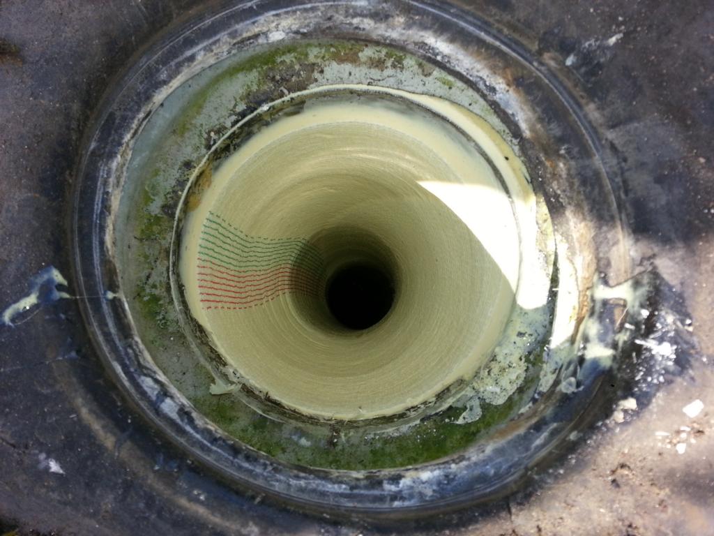 Beispiel zur Sanierung eines Fallrohres aus Guss.